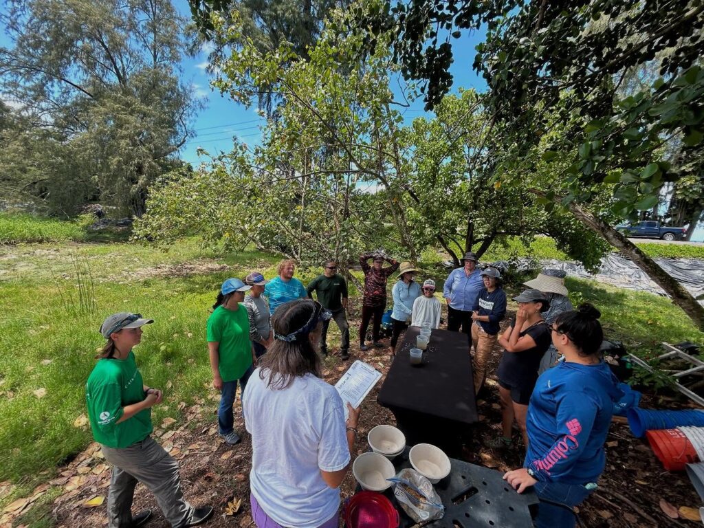 On this Kūkahi day of the Hawaiian lunar calendar—a time of rising energy—we welcomed an inspiring group of teachers and community educators to our very first teachers workshop at Lokowaka. The workshop was Co-hosted with Diana Warren of Learning Endeavors (Maui) and centered on coastal wetlands and climate resilience. Our local educators immersed themselves in hands-on learning, gaining practical experience with place-based strategies to teach wetland ecology.
