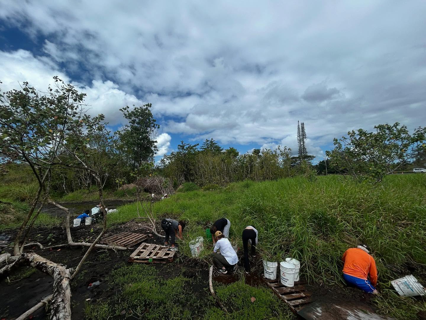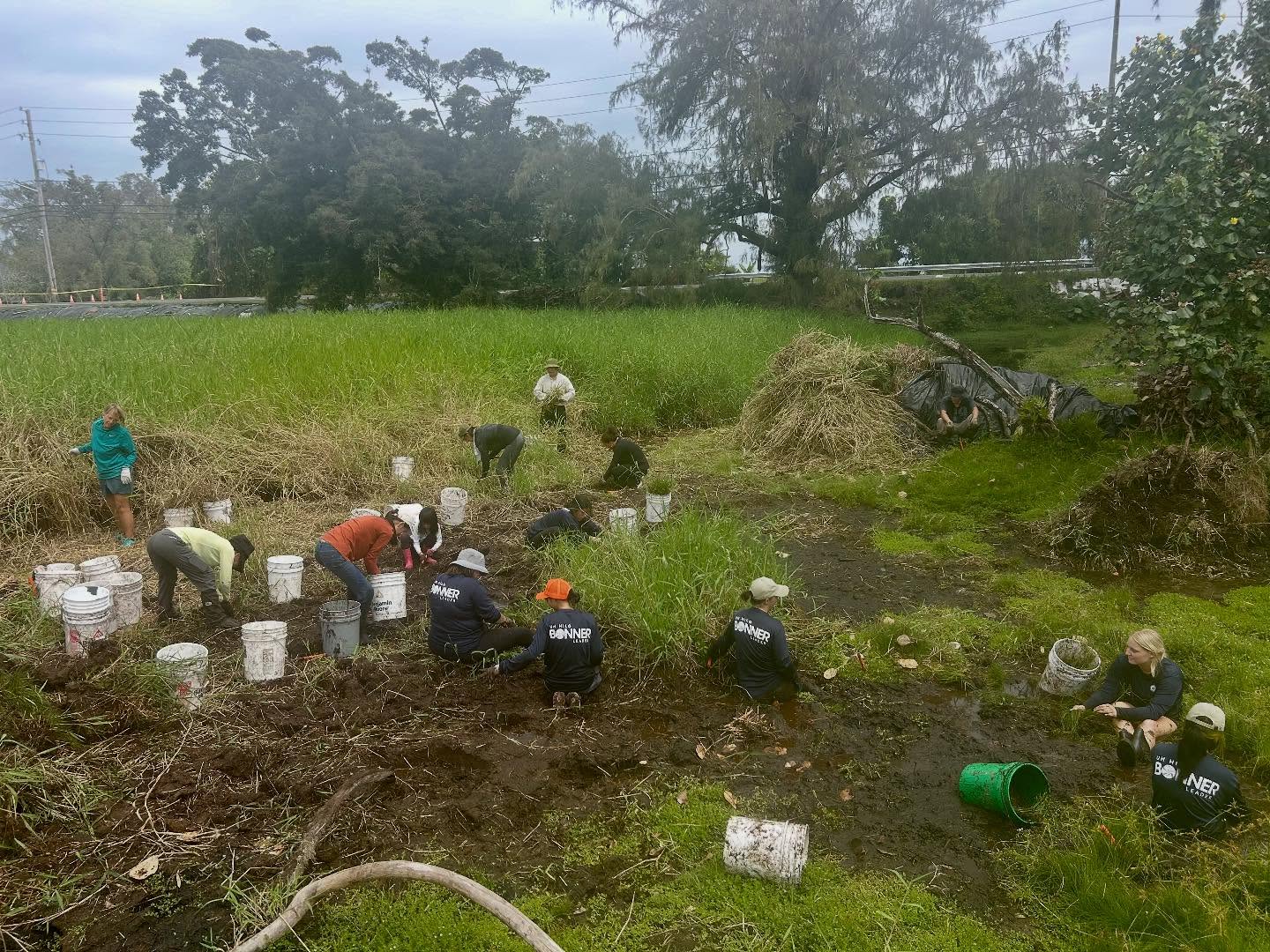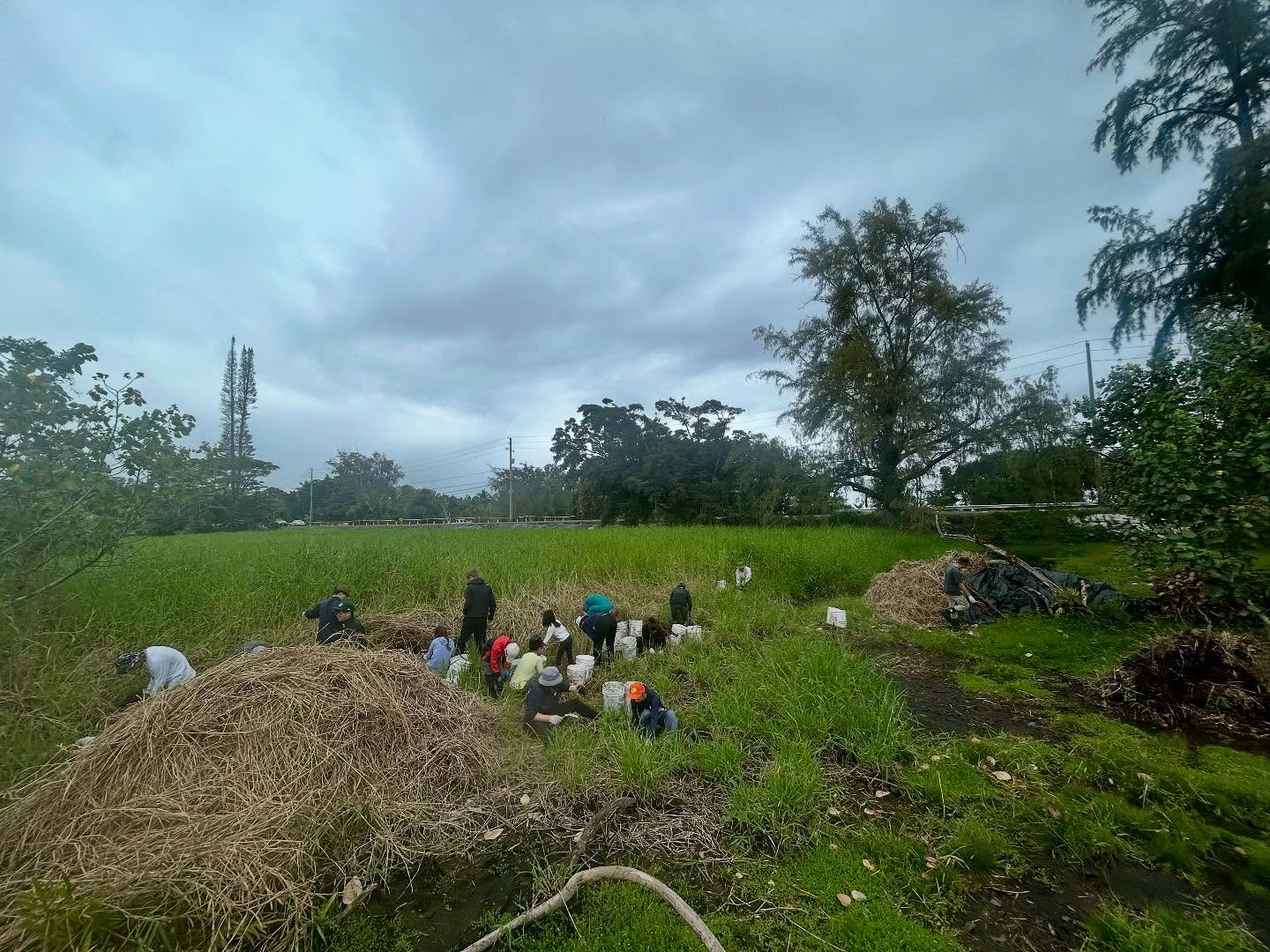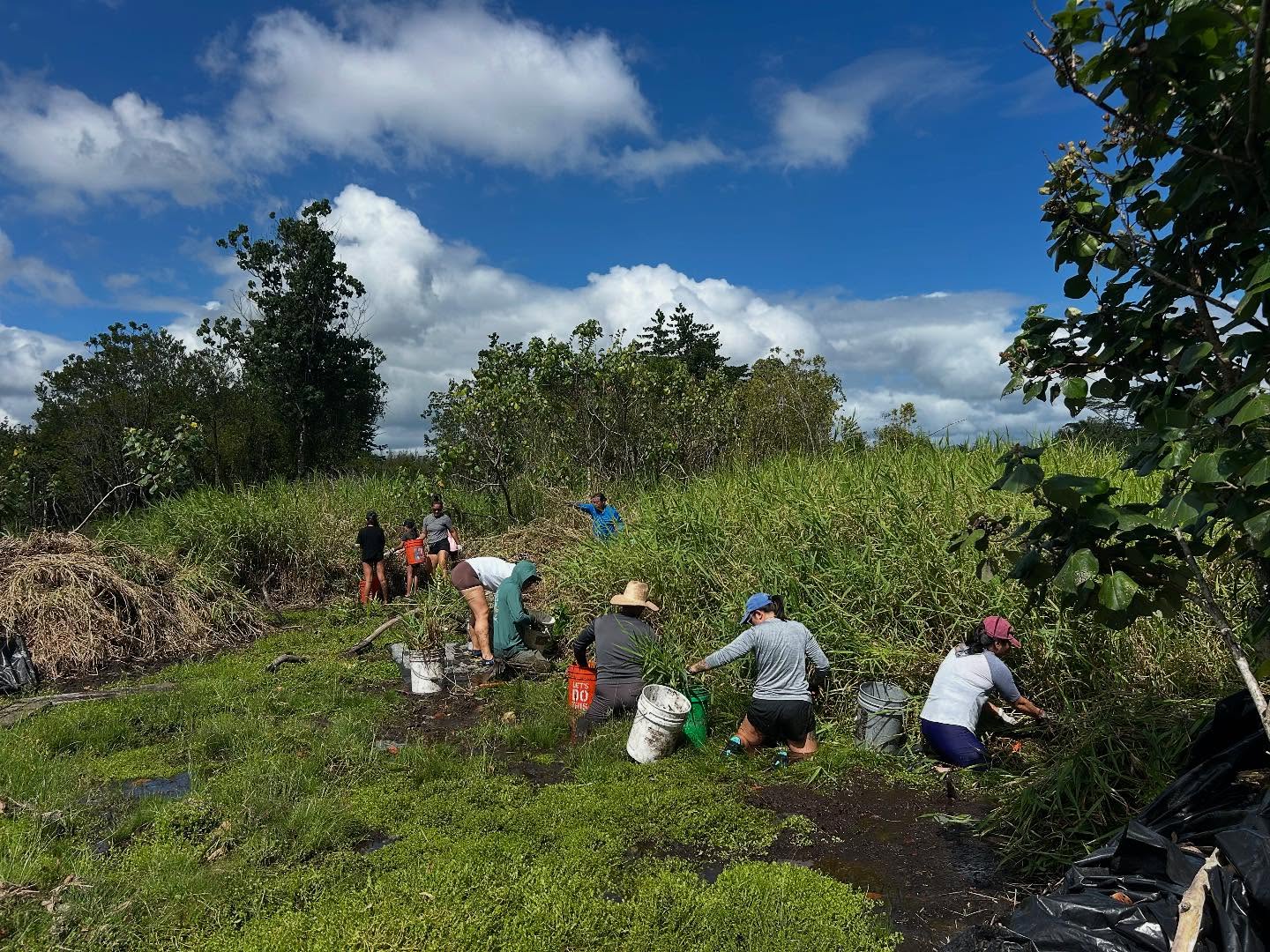 Lokowaka’s dedicated volunteers were joined by new community members, UH Hilo Bonner Leaders, visitors from Oʻahu, and students and professors from Ryukoku University’s Department of Agriculture in Japan. Together, their caring hands made a big impact in clearing invasive California grass.