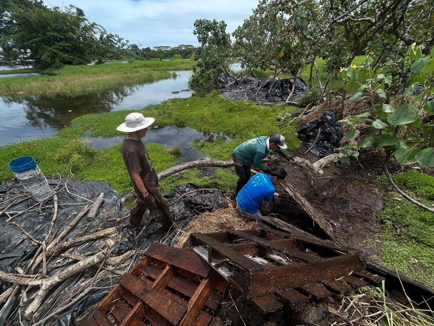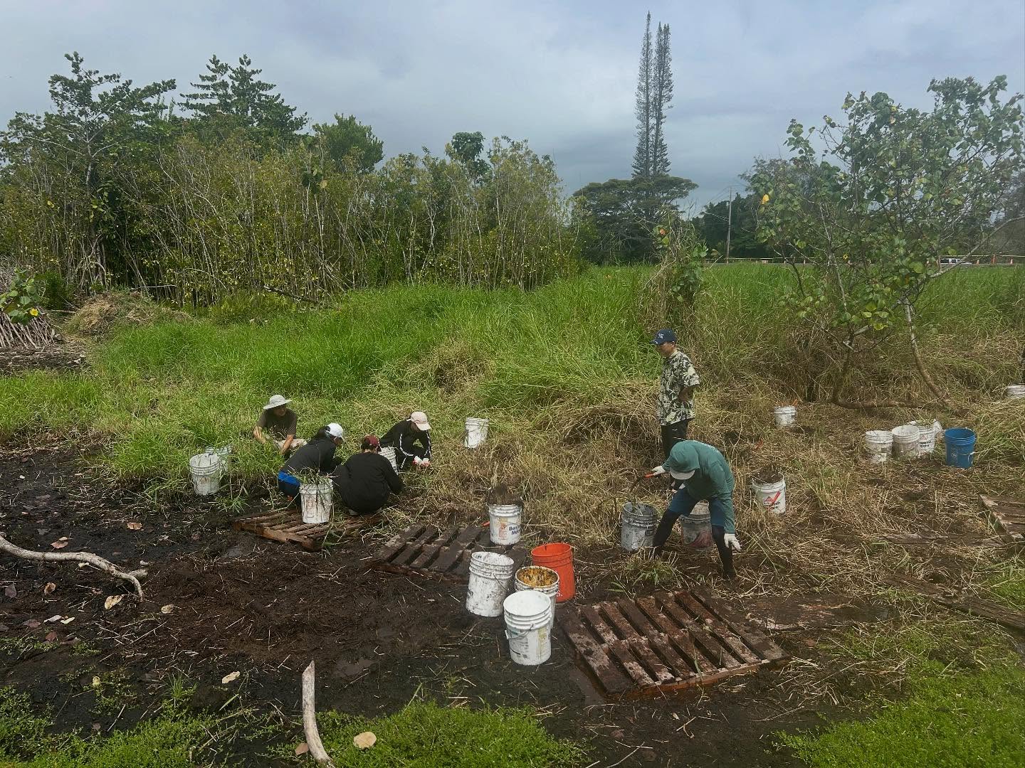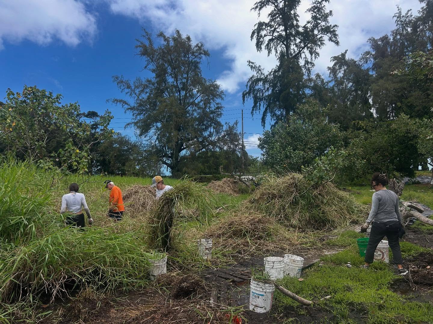 今日は常連のボランティアさん、新しく参加してくださった地元の方々、そしてカリフォルニアから来られた旅行者たちと一緒に作業をしました。新しい malama(ハワイの旧暦の月)に入るタイミングで、意図を立て、新しいことを始めるのにふさわしい時です。作業開始前の自己紹介にʻŌlelo Hawaiʻi(ハワイ語)を取り入れ始めました。私たちのこの夢を実現するお手伝いをしてくださった Pualena さんに心から感謝します。