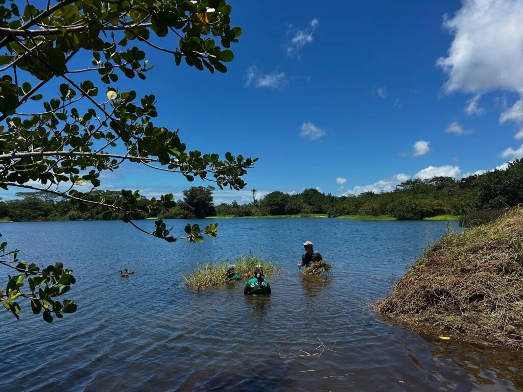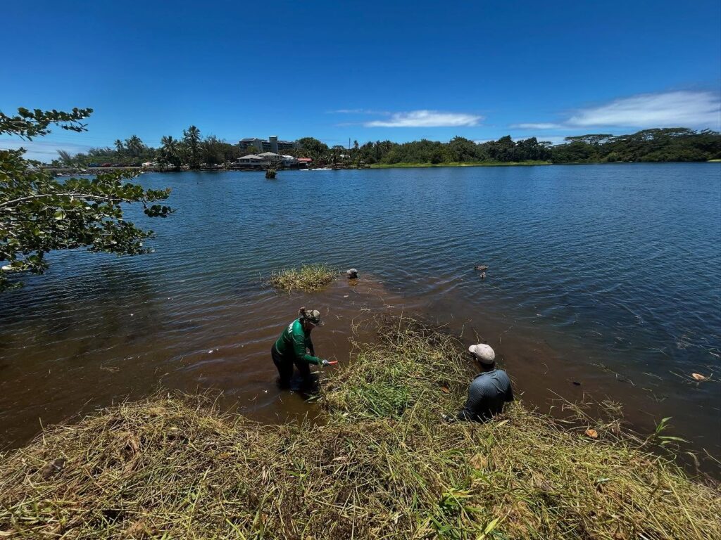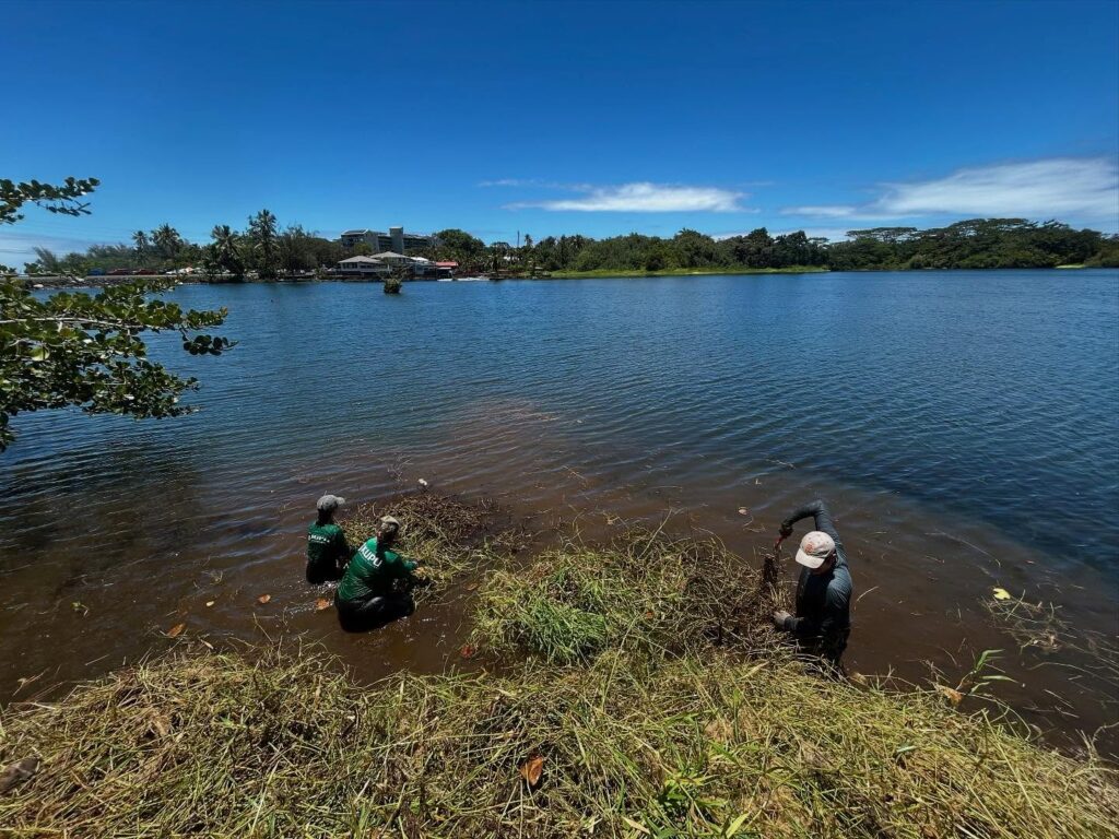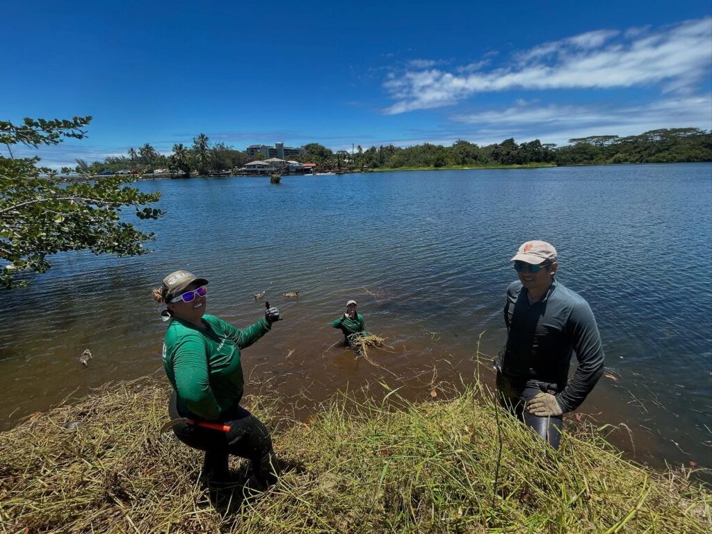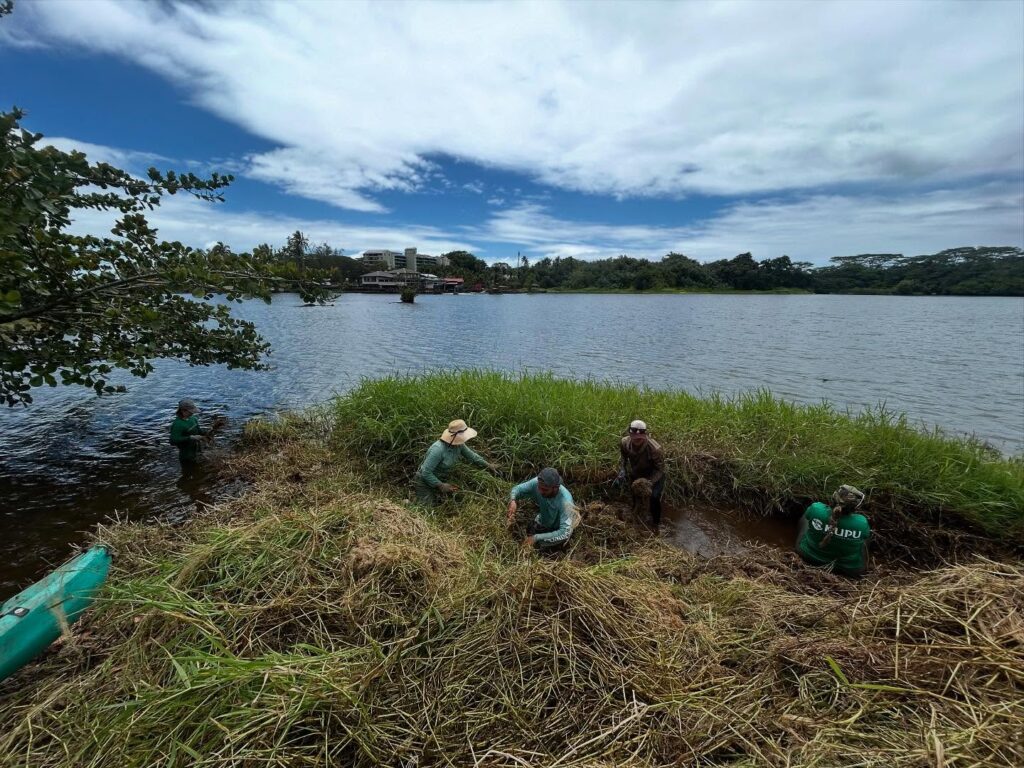 Thanks to the hard work of the Kupu HYCC Summer Program members and our volunteers, we made tremendous progress on the backside of the island today. A massive area of California grass rooted in the water—some of it quite deep during high tide, with tall stalks rising well above the surface—has now been reduced to just two small sections. “Small” only in comparison to what it once was! Even those remaining patches require a great deal of time and effort to remove.
