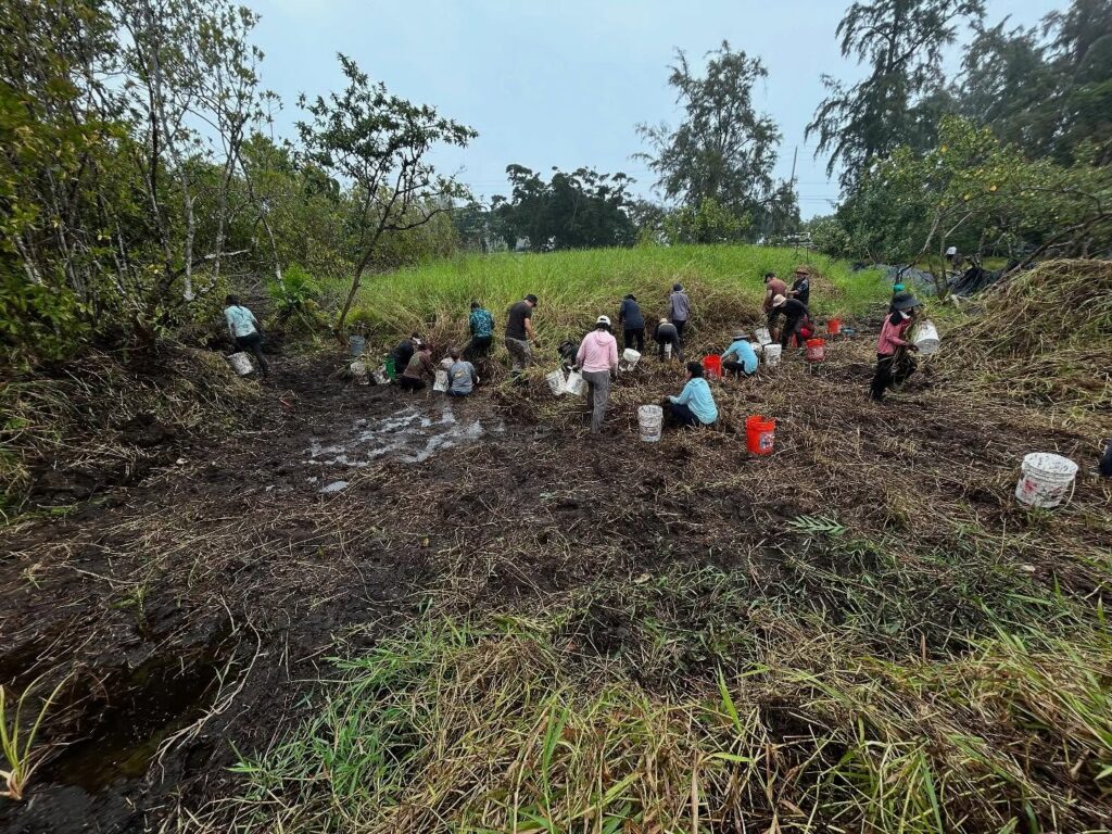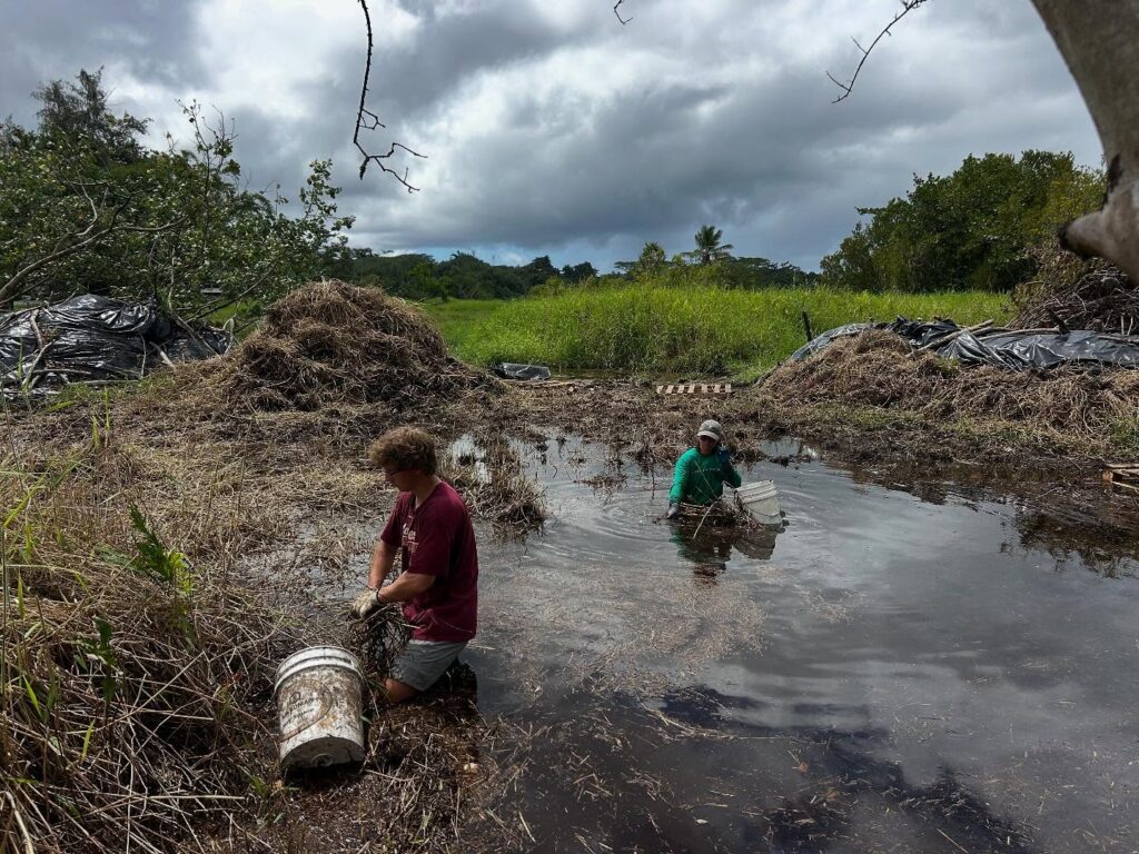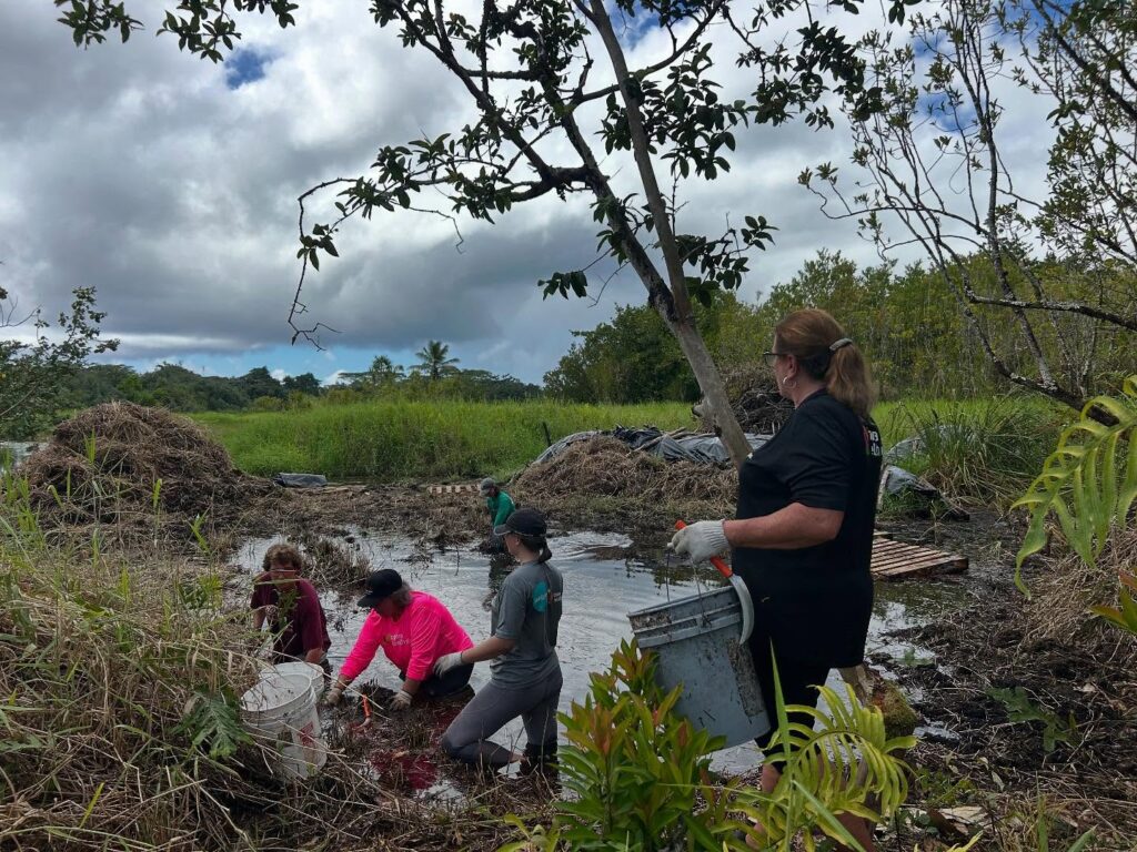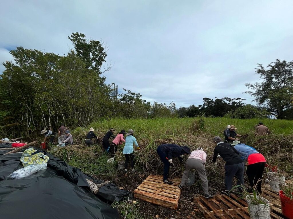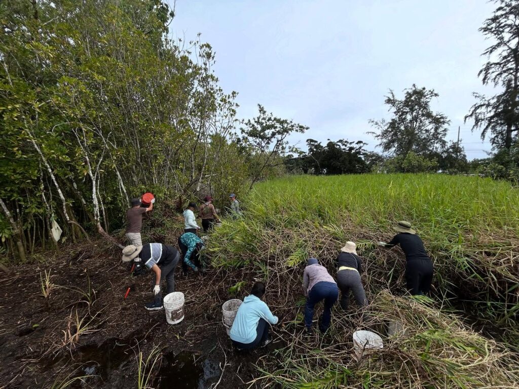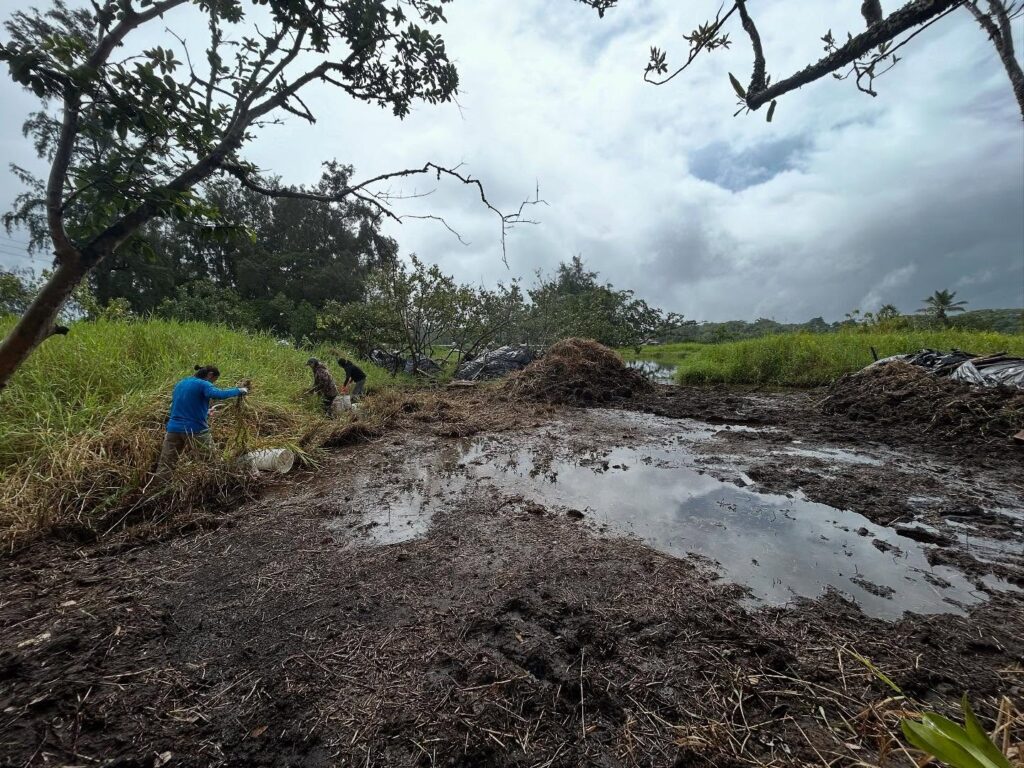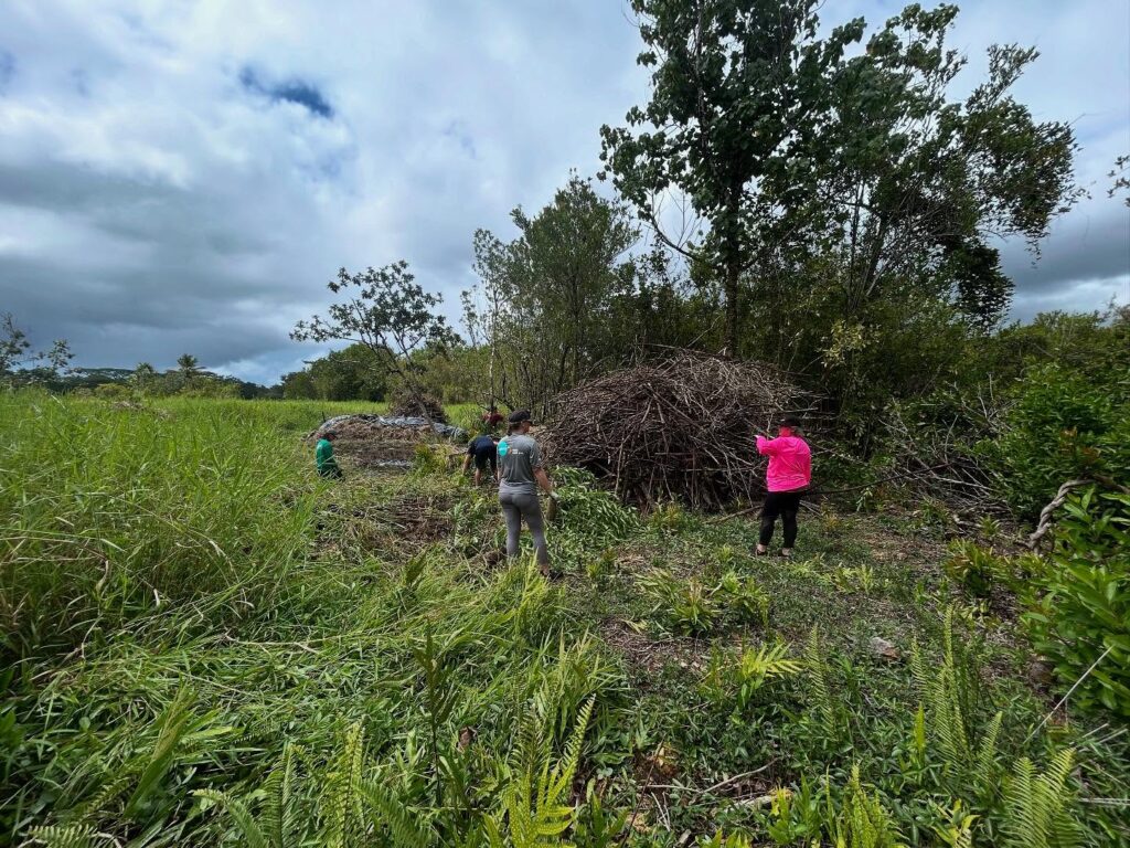 The morning began with our dedicated KUPU member, followed by a high school teacher visiting from Japan who came to learn about our work and joined us in the field. Later, a regular volunteer—a mother with her two young children—arrived, followed by members of the Waiākea High School Robotics Team and their friends.