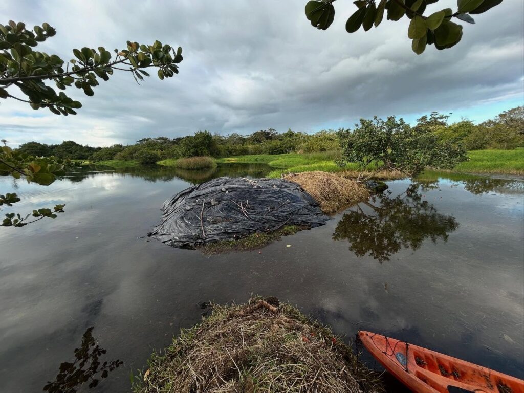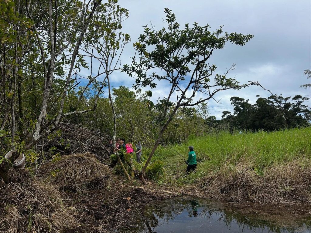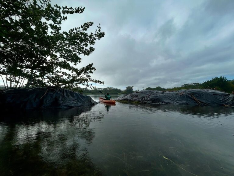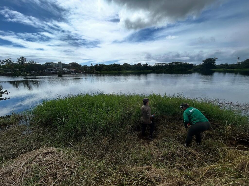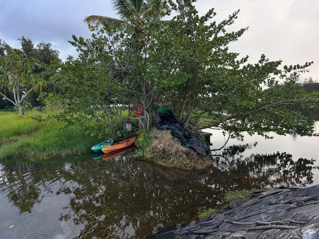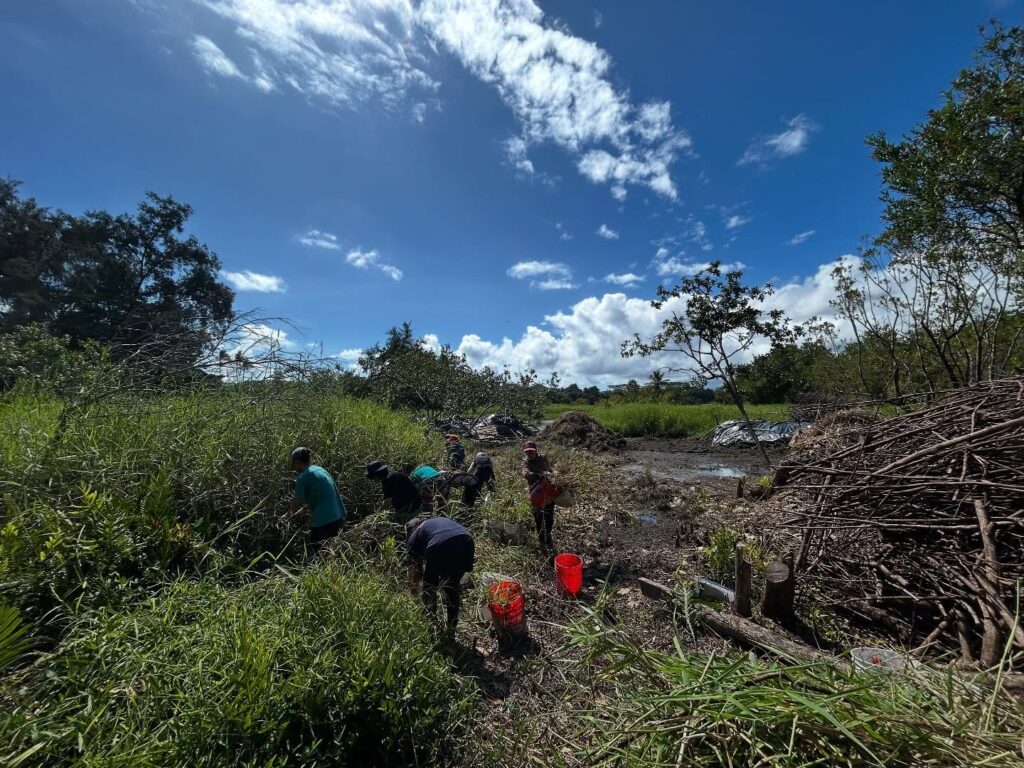 今朝は、Kupu HYCCメンバーと一緒に軽いメンテナンスの草取りからスタートしました。ボランティアたちが到着してからは、昨日と同じエリアに戻り、引き続き木を切ったり、草を刈ったり抜いたりして、湿地再生作業を進めました。満潮時には、水がキオナカパフ池のこのセクションに流れ込みやすくなった様子がはっきりと見え、池が生き返りつつあるのを実感できます。