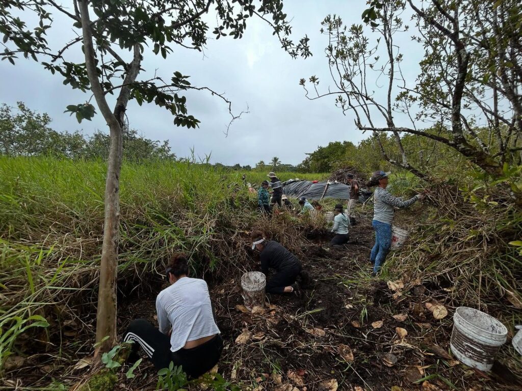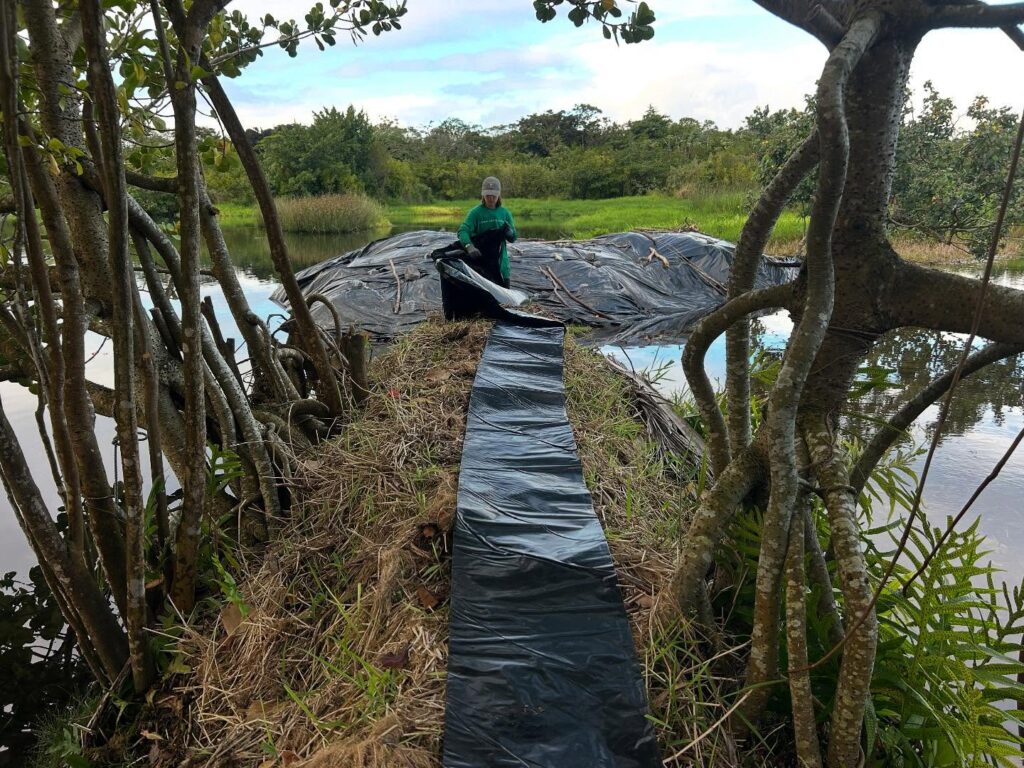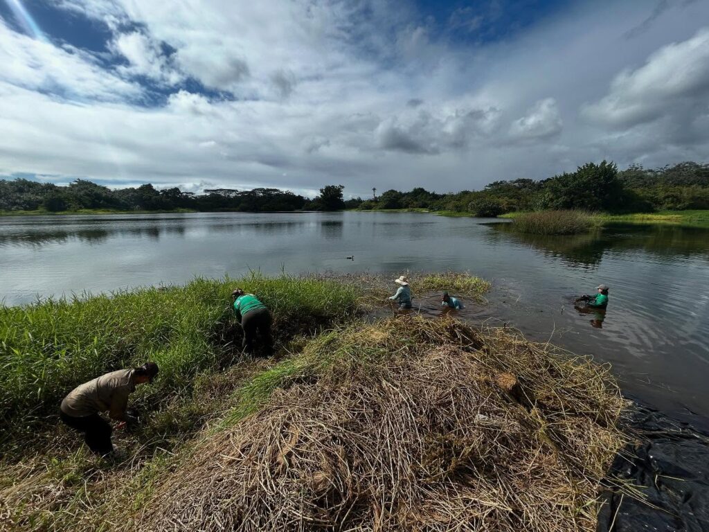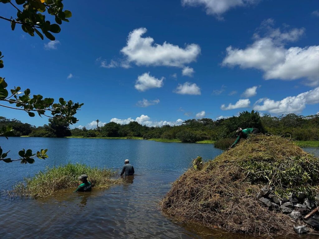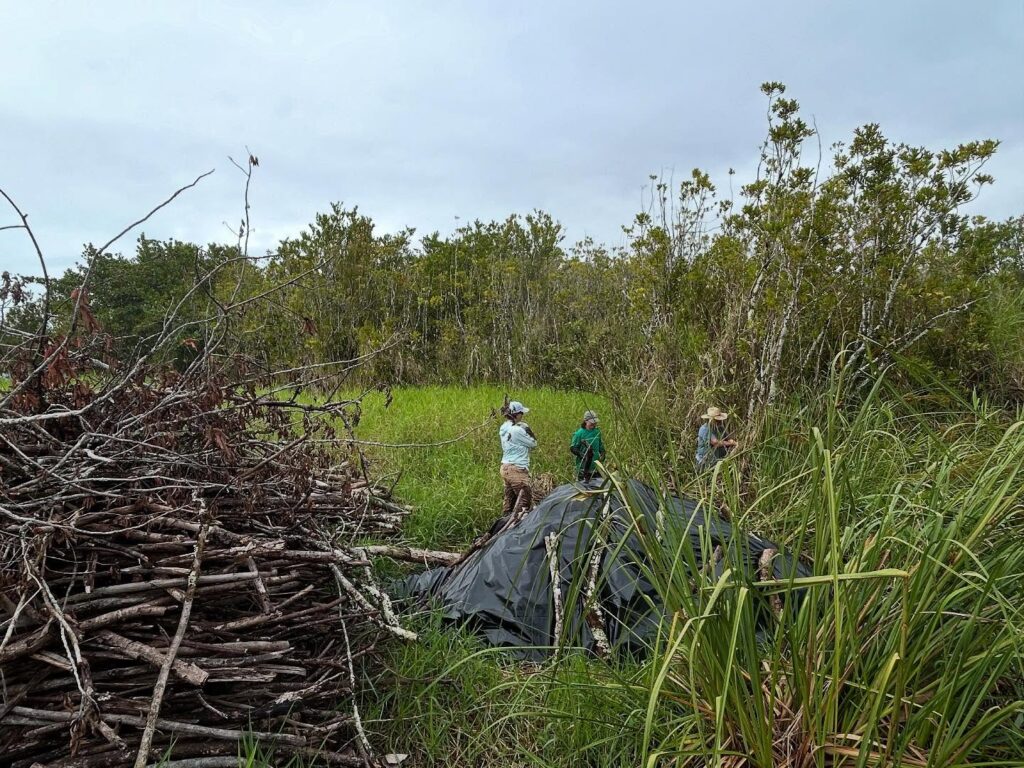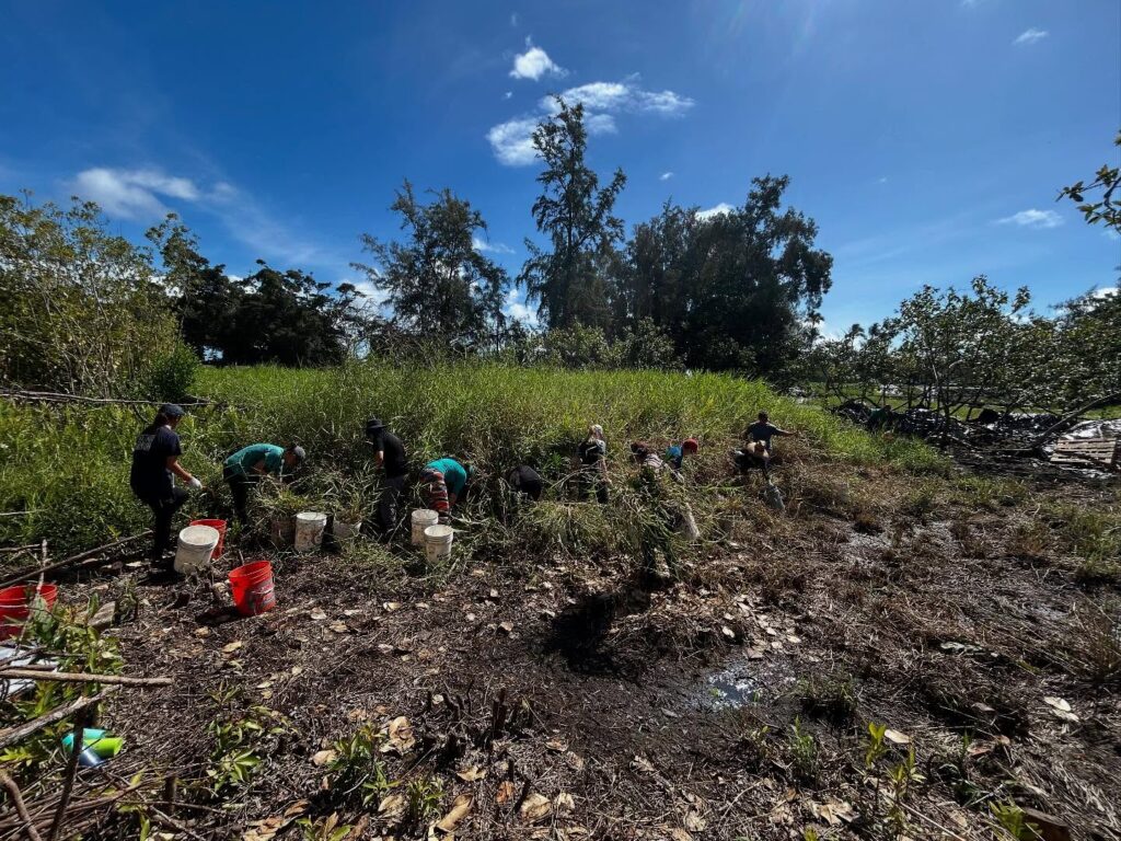 今朝は、Kupu HYCCメンバーと一緒に軽いメンテナンスの草取りからスタートしました。ボランティアたちが到着してからは、昨日と同じエリアに戻り、引き続き木を切ったり、草を刈ったり抜いたりして、湿地再生作業を進めました。満潮時には、水がキオナカパフ池のこのセクションに流れ込みやすくなった様子がはっきりと見え、池が生き返りつつあるのを実感できます。