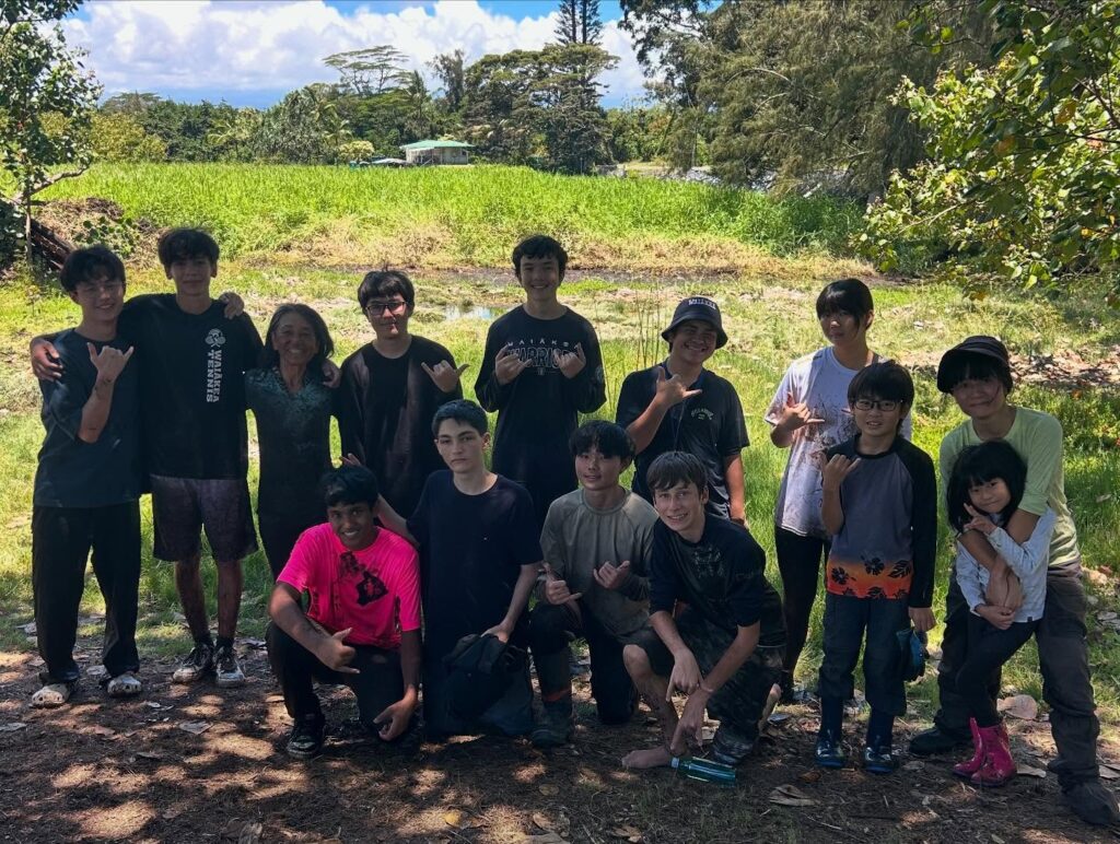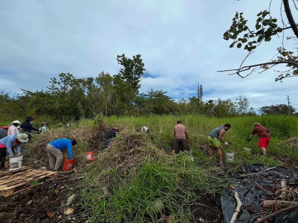 朝は、私たちの頼もしいKupuメンバーとともに始まりました。その後、日本から来られた高校の先生が現地の活動を学びに訪れ、一緒に作業にも参加してくださいました。しばらくして、いつも参加してくれているボランティアのお母さんと二人の小さなお子さんが到着し、さらに、Waiākea高校ロボティクスチームのメンバーとそのお友だちも加わってくれました。
